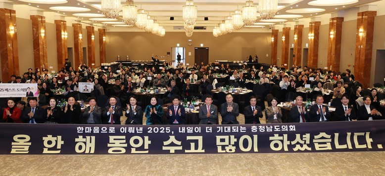 [충남 세계타임즈=이현진 기자] 충남도의회(의장 홍성현)는 15일 예산 스플라스 리솜 그랜드홀에서 도의원과 사무처 직원, 도지사, 교육감 등 220여 명이 참석한 가운데 ‘2025년 한마음 송년 워크숍’을 개최했다.
