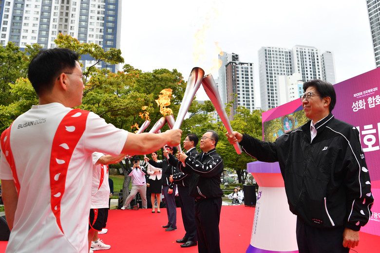 합화된 성화는 이날 시청 앞을 출발, 연제구를 시작으로 4일간 1천 2백여 명의 주자들과 함께 16개 구·군을 달리게 된다. 이후 부산 시민의 체전 성공 염원을 담아 17일 체전 개막식이 열리는 아시아드주경기장에서 성화대에 점화돼 체전 기간 힘차게 타오를 예정이다.