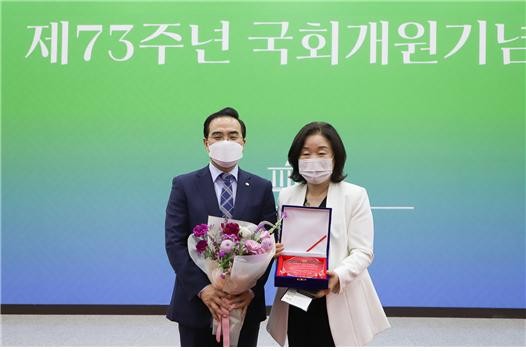 6월 4일(금) <제73주년 국회개원기념식>과 함께 진행된 <대한민국 의정대상시상식>에서 박 의원은 ‘우수 법률’ 부문과 ‘우수 국회의원연구단체’부문 모두에 이름을 올렸다.