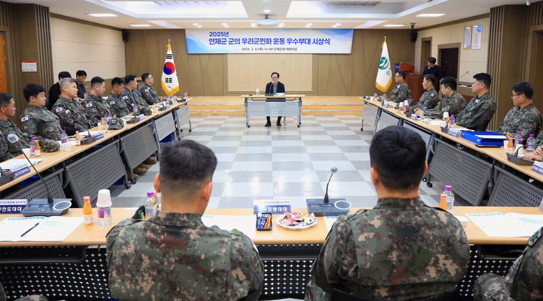 [인제군 세계타임즈=김민석 기자] 인제군은 지난 3월 6일(목) 인제군청 대회의실에서 ‘인제군 군(軍)의 우리군민화 운동 우수부대 시상식’을 개최했다.