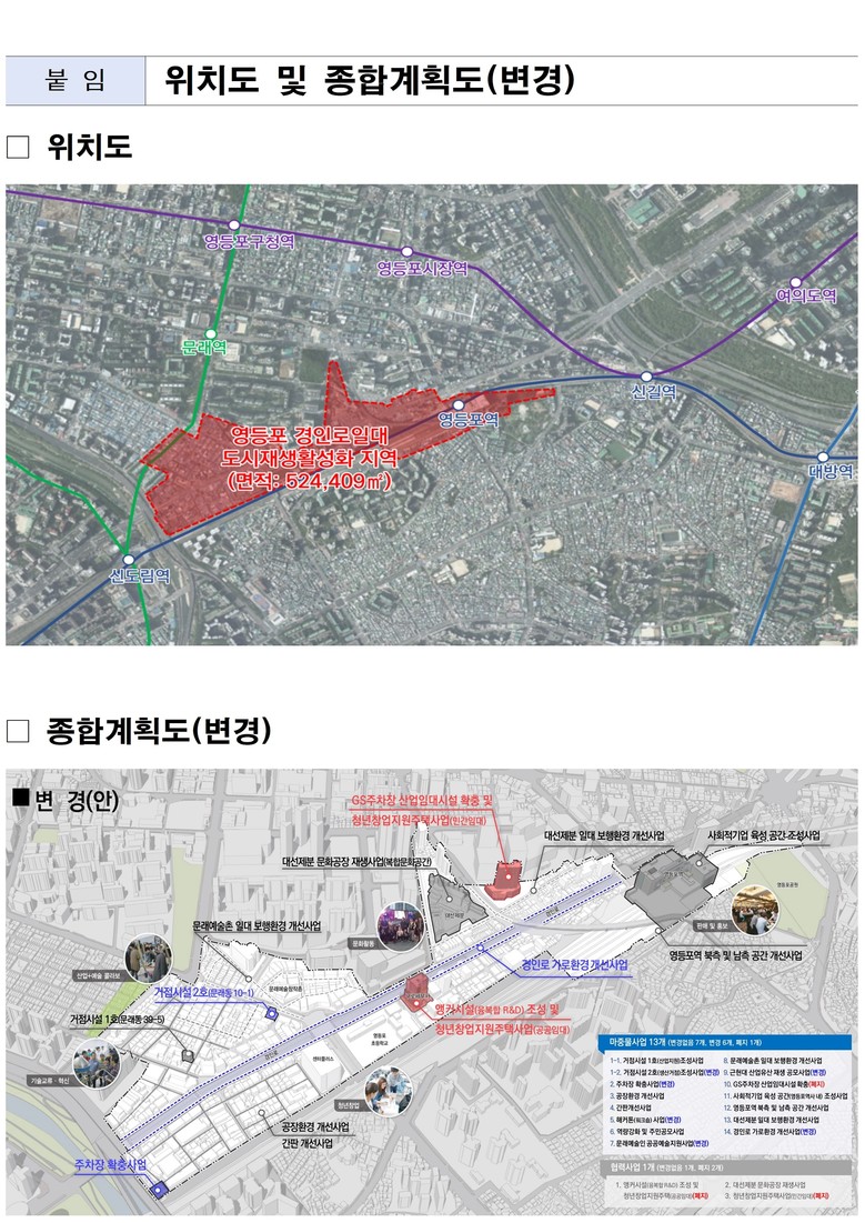 - 영등포 경인로 일대 도시재생사업 통한 지역 산업 활성화 및 도시환경 개선 완료