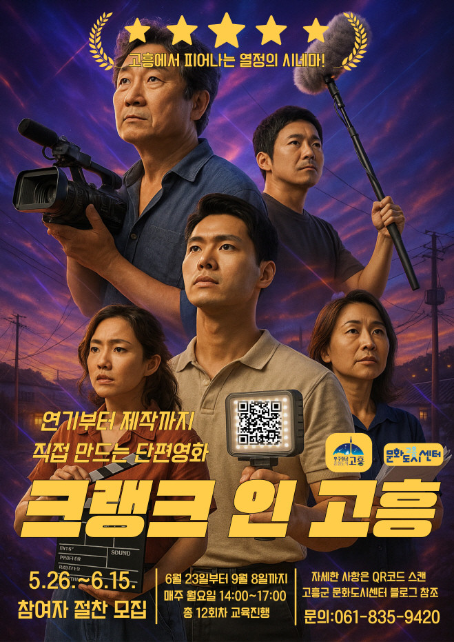 ‘크랭크 인 고흥’은 ‘영화 제작의 시작’을 뜻하는 ‘크랭크 인(Crank In)’과 ‘고흥’을 결합한 명칭으로, 고흥군 주민이 주체가 되어 지역의 자연과 이야기를 영상으로 풀어내는 참여형 문화 프로젝트다.