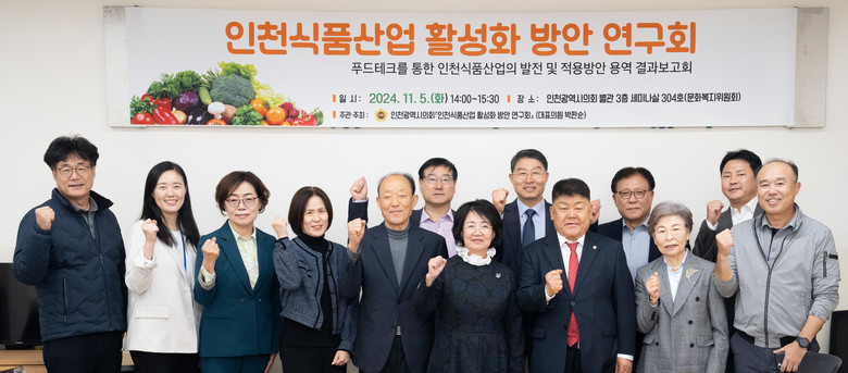 [인천 세계타임즈=심하린 기자] 인천광역시의회 의원연구단체인 ‘인천식품진흥정책연구회(대표의원 박판순)’는 최근 박판순(국·비례) 대표의원을 비롯해 박창호(국·비례) 의원, 식품 관련 협회장, 전문가, 관계공무원 등이 참석한 가운데 ‘푸드테크를 통한 인천식품산업의 발전 및 적용방안 용역 결과보고회’를 개최했다고 7일 밝혔다.