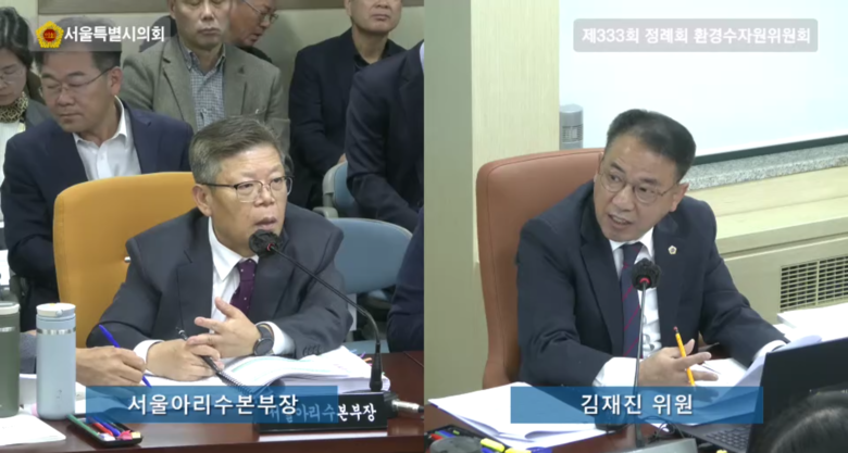 [서울 세계타임즈=이장성 기자] 서울특별시의회 환경수자원위원회 김재진 위원(국민의힘, 영등포1)은 10일 열린 서울아리수본부 행정사무감사에서 정수장 대형펌프 설치사업의 보증효율 미달 사례가 지속적으로 발생하고 있는 문제를 지적하였다.