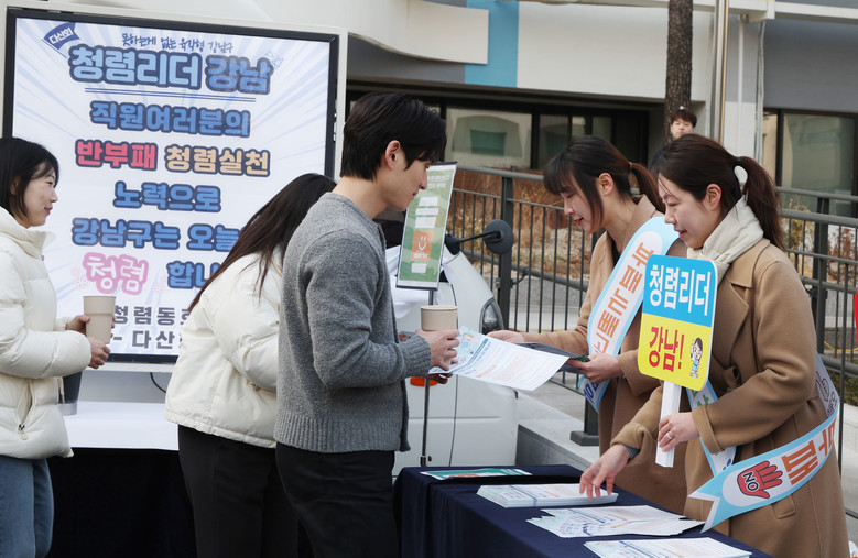 이번 캠페인은 강남구 청렴동호회 ‘다산회’가 주관했다. 다산회 회원들은 출근길 직원들에게 ‘청렴커피(차)’를 건네며 3년 연속 청렴 우수등급 달성을 함께 일군 직원들에게 감사의 뜻을 전했다. 동시에 부정부패와 갑질 근절, 공정하고 투명한 행정 실천 의지를 되새기는 현장 캠페인도 함께 펼쳤다.