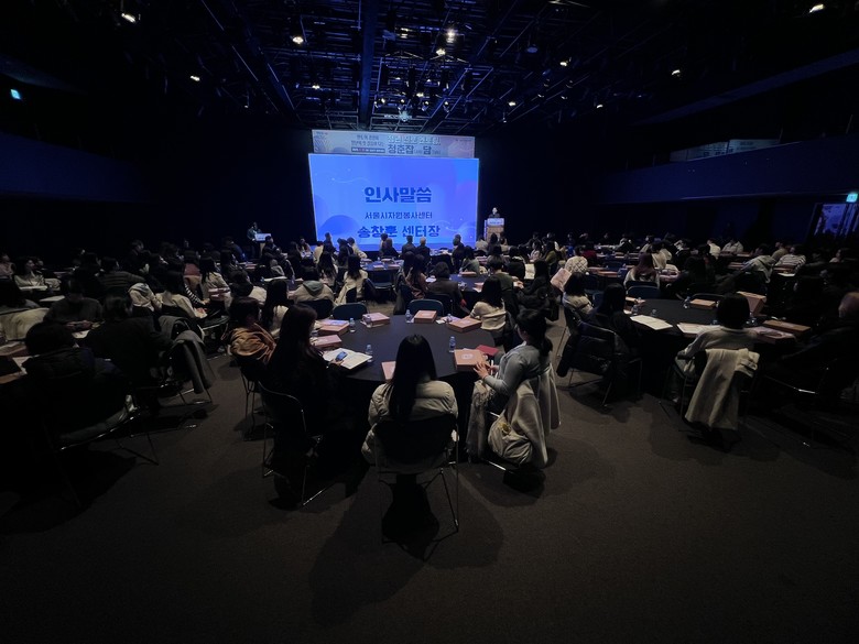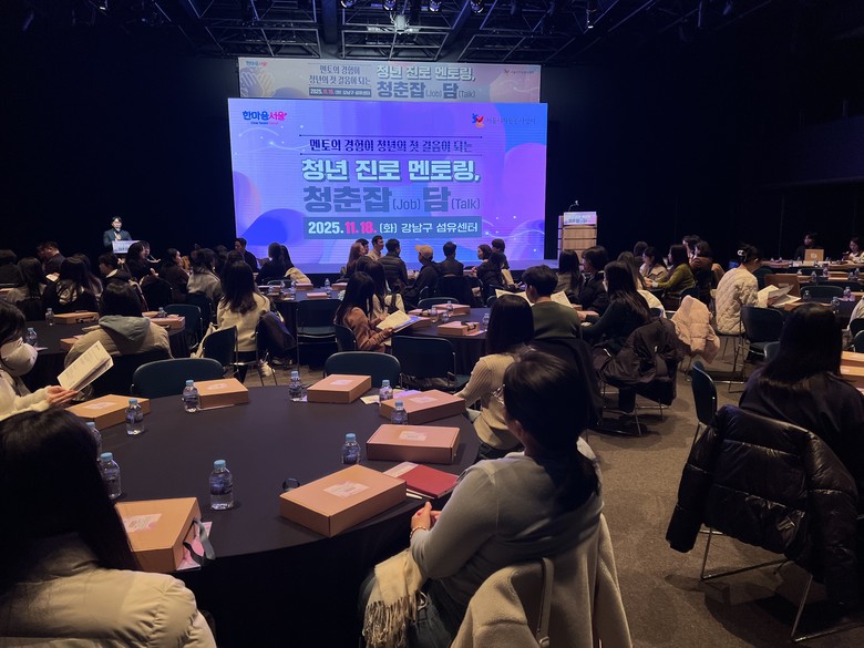 [서울 세계타임즈=이장성 기자] 서울시자원봉사센터(센터장 송창훈)는 지난 11월 18일(화) 서울 강남구 섬유센터에서 서울 소재 기업‧기관 임직원 봉사자 48명과 함께 청년 150여 명을 대상으로 진로 멘토링 프로그램 ‘청춘잡담(Job Talk)’을 진행했다.