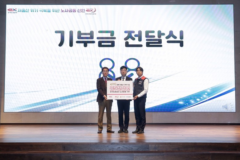 또한, 이번 행사에서 도로공사 노사는 공사의 경북혁신도시 이전 10주년을 기념해 경상북도가 주관하는 저출산 극복 모금운동에 5천만원을 기부했으며, 직장 내 어린이집을 지역에 개방하는 방안 등을 검토하는 것으로 인구소멸 등 지역사회 위기 극복에도 함께 노력하겠다고 밝혔다.