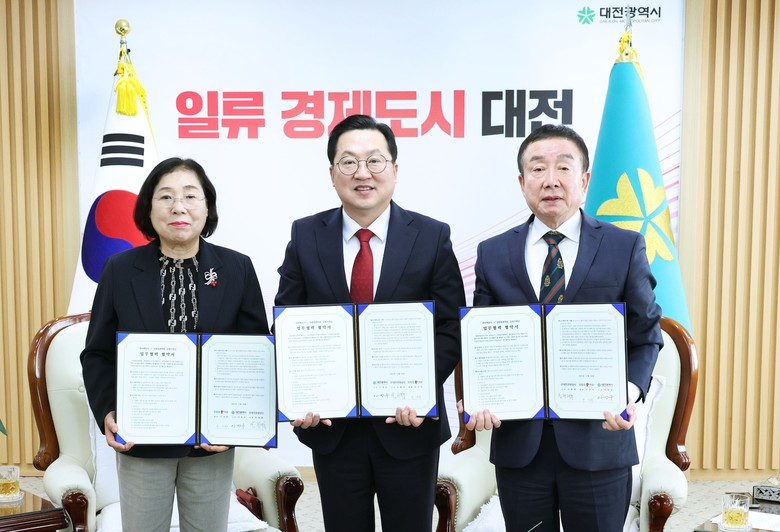 대전시는 28일 시청 10층 응접실에서 대전관광공사, ㈜장충동왕족발과 함께 공동브랜딩 업무협약을 체결했다.