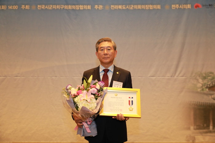 A. 전국시군자치구의회의장협의회에서 제게 의정봉사상을 주신 데 대해 개인적으로 영광이고 또 무주군민 여러분께도 감사인사를 드립니다. 사실 제가 펼치는 의정활동 방식과 결과에 대해 언제나 확신은 갖고 있지만 주민 여러분과 전문기관의 평가를 받을 기회가 매우 드물었습니다. 그래서 이 방식이 맞는지에 대해 의문도 생기곤 했습니다. 때마침 협의회에서 주신 의정봉사상을 통해 그동안 구현해온 의정방향과 방식이 옳았음을 증명하게 돼 다행이라고 생각합니다. 이번 수상을 계기로 조금 더 적극적이고 친밀한 의정활동을 펼치는 의장이 되려고 합니다.