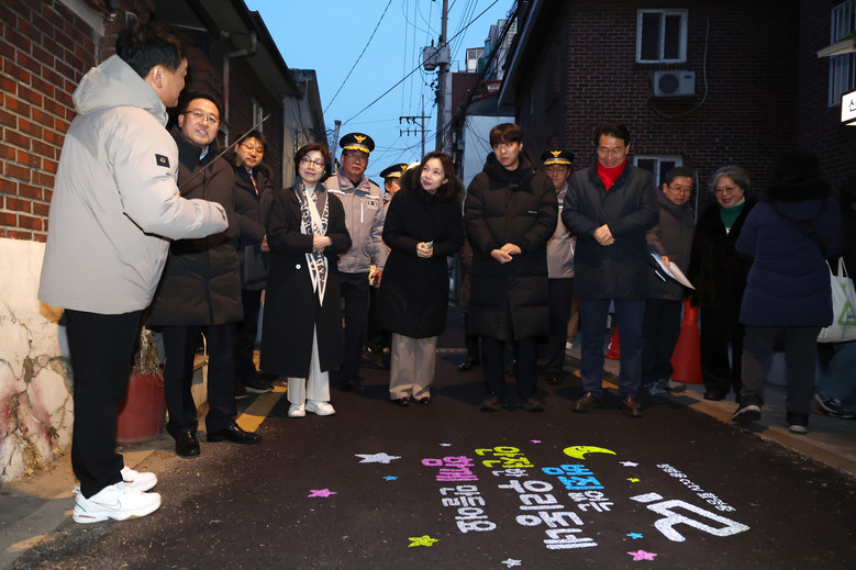 이어 서대문구 창천동으로 이동해 어두운 골목에 설치된 스마트보안등과 로고젝터 등을 점검했다. 현장 방문에는 이 지역 시의원인 정지웅 의원이 함께했다.
