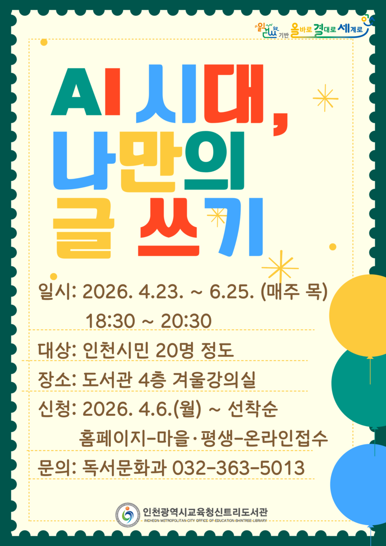 자세한 사항은 신트리도서관 독서문화과(032-363-5013)로 문의하면 된다.