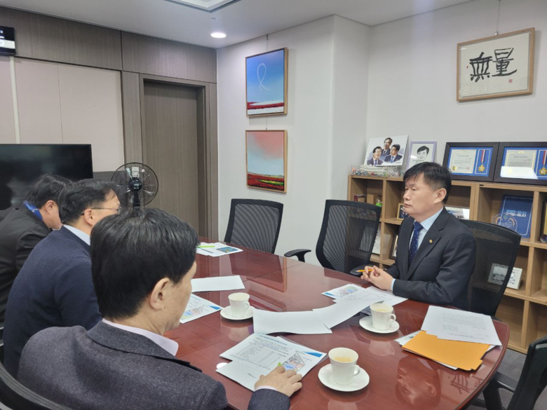 [세계타임즈 = 심귀영 기자] 지난해 2월 <산업입지 및 개발에 관한 법률> 일부개정안과 <공유수면 관리 및 매립에 관한 법률> 일부개정안을 대표발의 하는 등 동호안 부지 규제 해소에 앞장서 온 서동용 국회의원은 1일 오전 포스코홀딩스와 만나 동호안 개발 계획을 보고받고, 향후 사업 추진 과정을 논의했다.