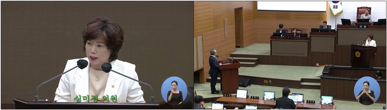 | ▲ 서울시의회 32회 임시회에서 심미경 의원이 정근식 교육감에게 시정질문을하고 있다. |