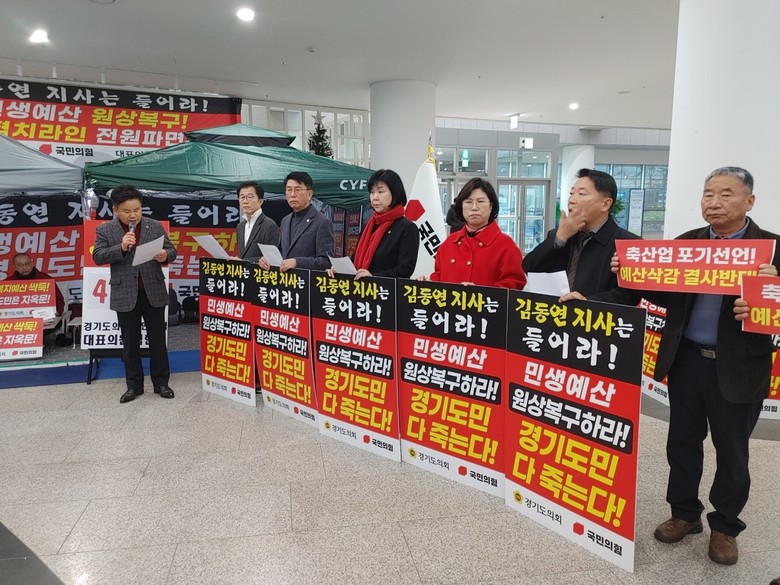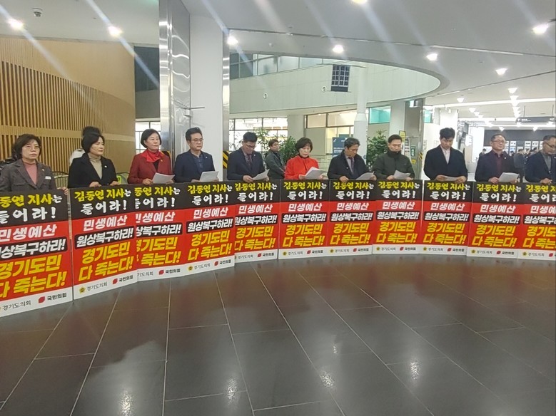 [경기도 세계타임즈 = 송민수 기자] 경기도의회 건설교통위원회와 보건복지위원회 소속 국민의힘 의원들이 28일 도의회 1층 로비에서 기자회견을 열고 “김동연 지사의 ‘불량예산’이 도민의 삶을 벼랑 끝으로 내몰고 있다”고 강하게 비판했다.