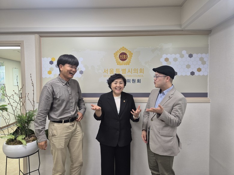[서울 세계타임즈=이장성 기자] 서울특별시의회 보건복지위원회 김영옥 위원장(국민의힘, 광진3)은 6월 26일(목) 오후 4시, 서울특별시의회 보건복지위원회 위원장실에서 이찬호 광진구 청년 네트워크 위원장, 장두원 신용카드사회공헌재단 지정 신용상담센터 전문위원과 함께 청년금융취약계층 지원방안 모색을 위한 간담회를 진행하였다.