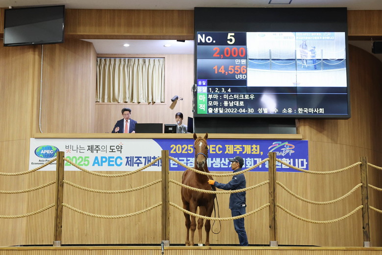 이날 경매에서는 경주마 총 24두가 낙찰돼 새 주인을 만났다. 낙찰률은 39.3% 기록했다. 총 낙찰 금액은 8억2,700만원을 기록했으며 평균 낙찰가액은 마리당 3,446만원으로 전년도 5월 열린 경매의 평균 낙찰가액보다 29만원 높은 수준을 보였다.