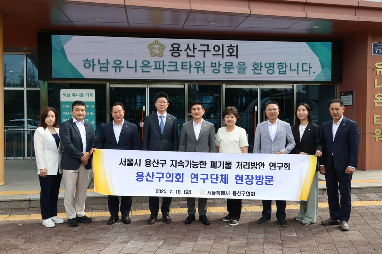 [용산구 세계타임즈=이장성 기자] 용산구의회 의원연구단체인 ‘용산구 지속가능한 폐기물 처리방안 연구회(대표의원 이미재)’는 지난 7월 15일 용산구에 적합한 폐기물 관리방안을 모색하고자 자원순환 선진시설인 하남시 유니온파크를 방문했다.