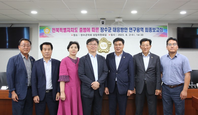 ‘장수형특례발전연구회’는 전북특별법 시행에 따른 장수군 대응 방안에 대하여 시행 예정인 특별법에 대한 조문 분석과 더불어 장수군 대응 방안으로 장수군 농생명 지구 지정, 장수군 친환경 산악관광특구 적극 추진 등을 제시하였다.