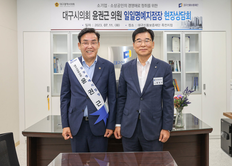 [대구 세계타임즈=한성국 기자] 대구시의회 윤권근 의원(경제환경위원회, 달서구5)은 지난 11일(화) 대구신용보증재단 죽전지점을 찾아 지역 소상공인들로부터 민생경제 일선에서 겪고 있는 고충을 듣고 보증상담을 하는 등 일일명예지점장으로 활약했다.