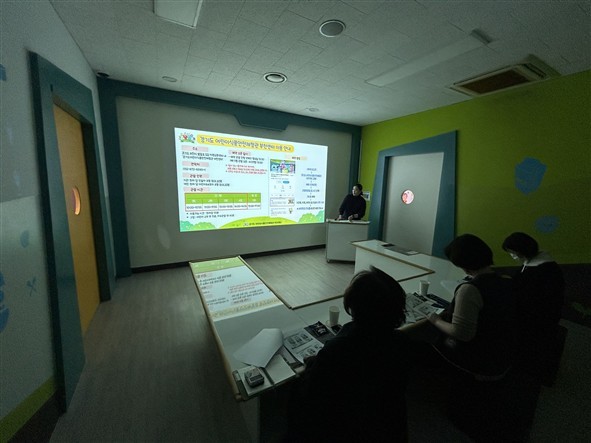 | ▲ 경기도 어린이 식품안전체험관 교육프로그램 및 운영에 관한 설명을 청취하고 있다 |