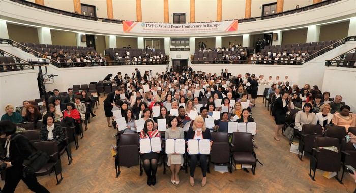 [세계타임즈 이광원 기자] (사)세계여성평화그룹(IWPG, 대표 윤현숙)이 4월 3일 오전 9시(현지시간) 루마니아 부쿠레슈티 대학교 법대 강당에서 개최한 ‘37억 여성 화합과 소통, 평화’ 컨퍼런스가 유럽의 여성 리더, 루마니아 대학생 등 350여 명이 참석한 가운데 성황리에 마쳤다.