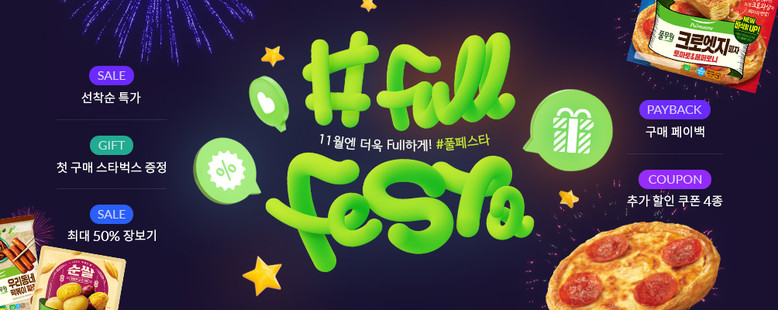 1차는 1일부터 15일까지, 2차는 16일부터 30일까지 진행되며 기간별로 다른 혜택을 만나볼 수 있다. 이번 #풀페스타는 프로모션 기간 내내 신한, 현대, 삼성, 롯데카드 최대 1만 2천 원 청구 할인과 페이코 결제 10% 추가 할인도 진행하여 역대급 ‘득템 찬스’를 제공한다.