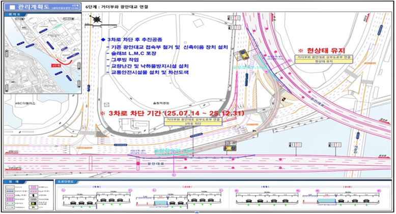 이번 공사는 해운대구 센텀시티 일원 교통혼잡 해소를 위해 추진 중인 ‘광안대교 접속도로 연결공사’의 일환으로, 신설 램프교량과 기존 광안대교 접속 구간을 잇는 공사다.