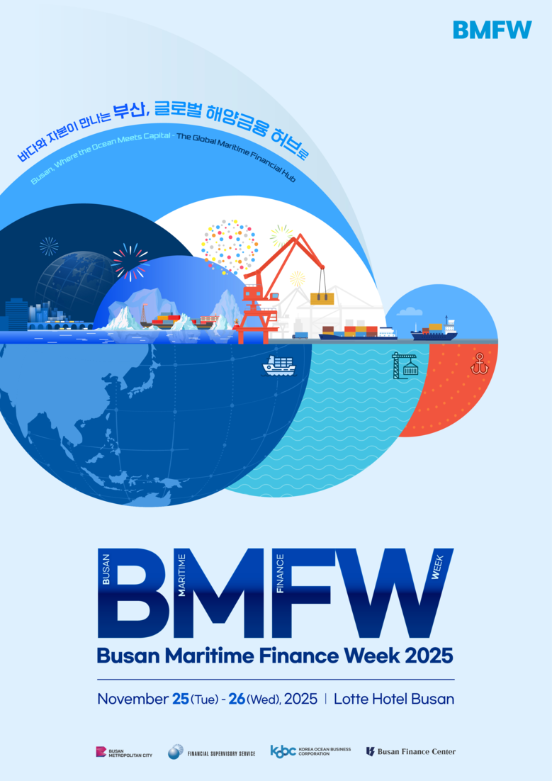 <2025 부산 해양.금융위크 (Busan Maritime&Finance week 2025, BMFW)> -(일 시) 2025. 11. 25.(화) ~ 11. 26.(수) *개막식: 11. 25.(화) 11:00~11:50 -(장 소) 롯데호텔 부산 크리스탈 볼룸 -(참석자) 이준승 부산시 행정부시장, 이찬진 금융감독원장, 안병길 한국해양진흥공사 사장, 이명호 부산국제금융진흥원 원장, 류동근 한국해양대학교 총장, 정은보 한국거래소 이사장 및 금융권 임직원 등 350여 명 -(주최/주관) 부산시, 금융감독원, 한국해양진흥공사 / 부산국제금융진흥원 -(주요행사) 개막식, 부산 해양금융컨벤션, 한국해양진흥공사 바다(BADA) 콘퍼런스 |