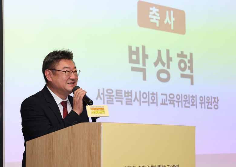 [서울 세계타임즈=이장성 기자] 서울특별시의회 교육위원회 박상혁 위원장(국민의힘, 서초구 제1선거구)은 지난 26일 오후 2시 SC컨벤션에서 개최된 '서울교육플러스와 함께하는 학교운영위원회 소통마당' 행사에 참석하여 학교운영위원들을 격려하고 뜻깊은 축사를 전했다.