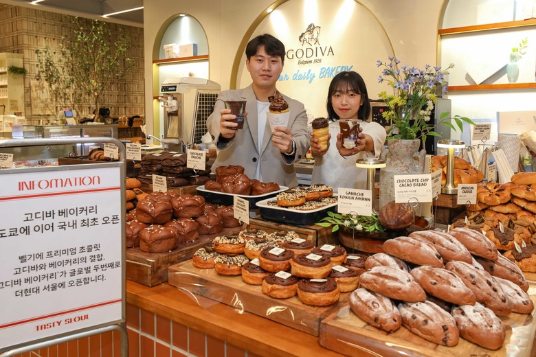 [세계타임즈 = 이현진 기자] 현대백화점은 더현대 서울 지하 1층에 '고디바 베이커리' 국내 1호 매장을 오픈했다고 7일 밝혔다. 고디바 베이커리는 벨기에 프리미엄 초콜릿 브랜드 고디바의 베이커리 브랜드로, 일본 도쿄에 이은 전 세계 두 번째 매장이다. 대표 상품은 '고디바가 만든 소라빵'(4,900원), '소프트아이스크림 소라빵'(9,300원), '딥트 스트로베리'(1만 2,000원) 등이 있다.