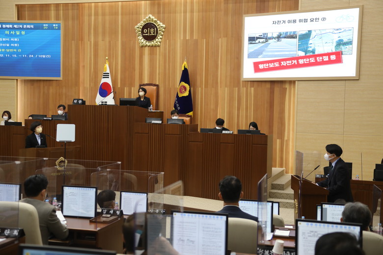 이순열 의원은 “코로나19 이후 거의 모든 분야가 주춤한 가운데에도 세종시 자전거 교통량은 큰 폭으로 증가했다”며 지난해 1년간 활동한 ‘안전한 자전거도로 시민점검단’을 통해 제기된 자전거도로 문제점에 대해 질의했다.