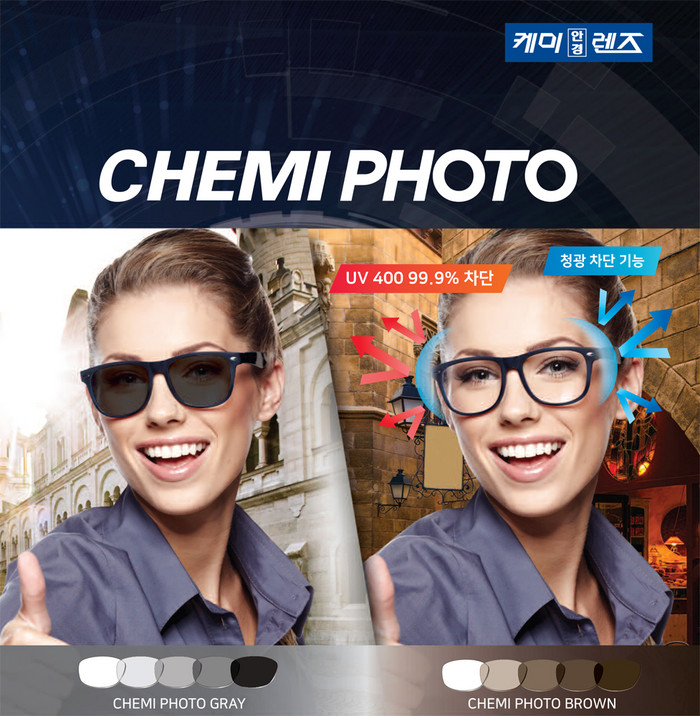 최근 케미렌즈를 비롯해 국내외 안경렌즈업체들은 청색광과 자외선을 차단하는 기능성 안경렌즈를 출시하고 있다. 케미렌즈는 자외선(UVA)을 최고 파장대 400나노미터에서 99.9% 차단하는 케미퍼펙트UV 소재의 케미안경렌즈, 변색렌즈인 `케미포토블루’를 공급하고 있으며 에실로코리아는 `니콘BLUV’ 렌즈를 판매하고 있다.