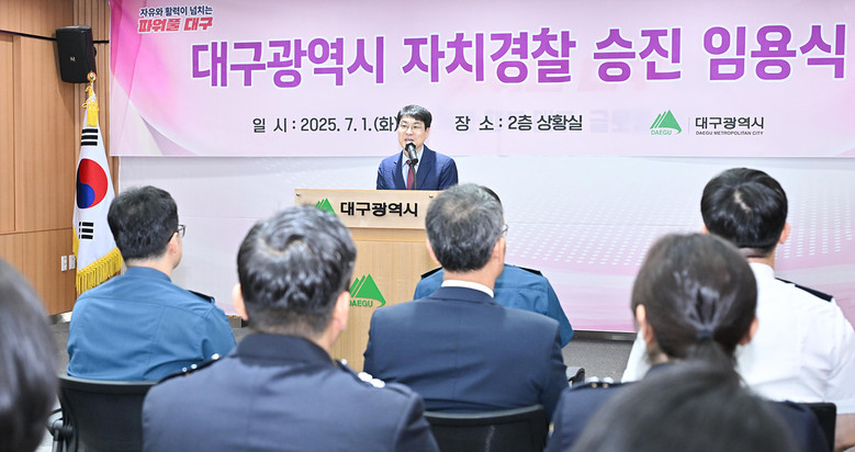 김정기 대구광역시 권한대행 행정부시장은 “승진을 축하드리며 앞으로 더 큰 사명감을 가지고 대구 시민의 안전과 일상 행복을 지키는 데 최선을 다해줄 것으로 기대한다”며, “자치경찰의 복지와 근무 여건 개선에도 지원을 아끼지 않겠다”고 말했다.
