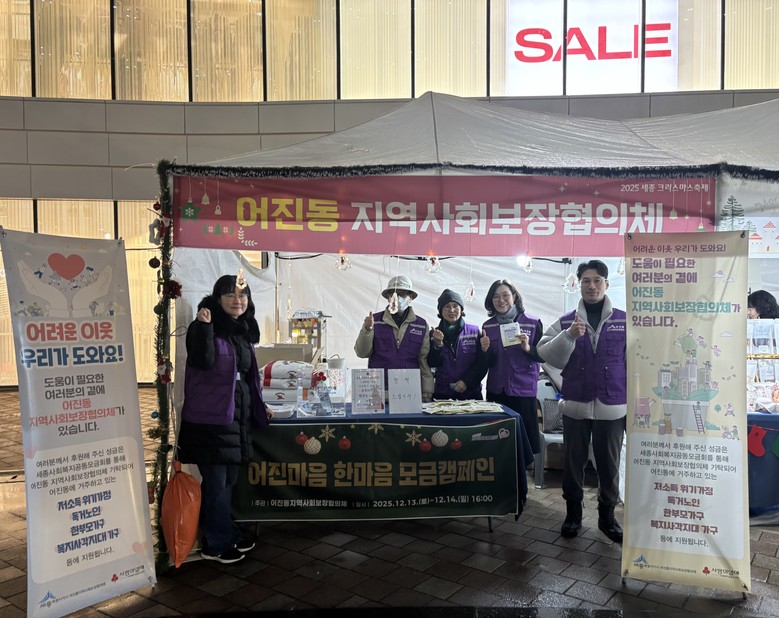 [세종 세계타임즈=이채봉 기자] 세종특별자치시 어진동지역사회보장협의체가 13~14일 어진동 AK& 광장에서 열린 어진동 크리스마스 축제에서 어진마음 한마음 모금캠페인을 진행했다.