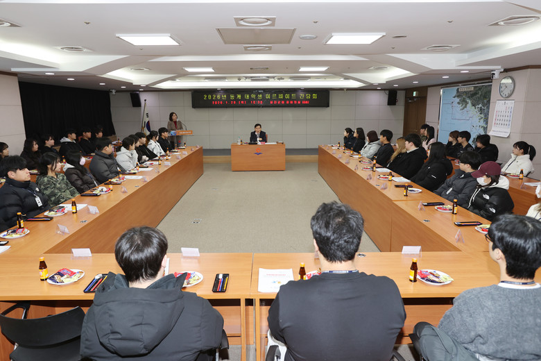 [옹진군 세계타임즈=심하린 기자] 옹진군(군수 문경복)은 29일, 옹진군청 중회의실에서 본청 및 보건소, 농업기술센터에서 동계 아르바이트 활동을 하고 있는 대학생 44명과 간담회를 개최했다고 밝혔다.