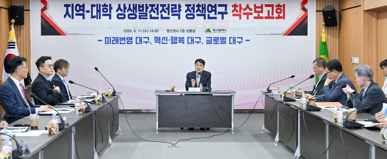 ▸ 대학 부총장 등 한자리에 모여 지역발전 연계 맞춤형 발전 전략 마련 [세계타임즈=대구 한윤석 기자] 대구광역시는 지역과 대학의 협력을 강화하고 상생할 수 있는 전략을 마련하고자 6월 11일(수) 오후 2시 동인청사에서 ‘지역과 대학의 상생발전전략 수립 정책연구 착수보고회’를 개최했다.