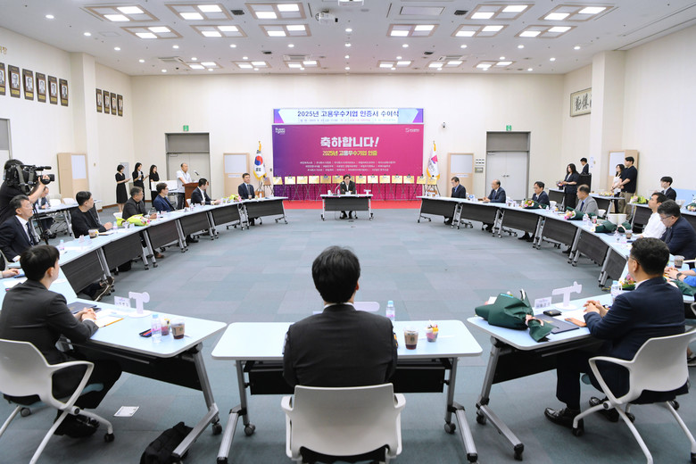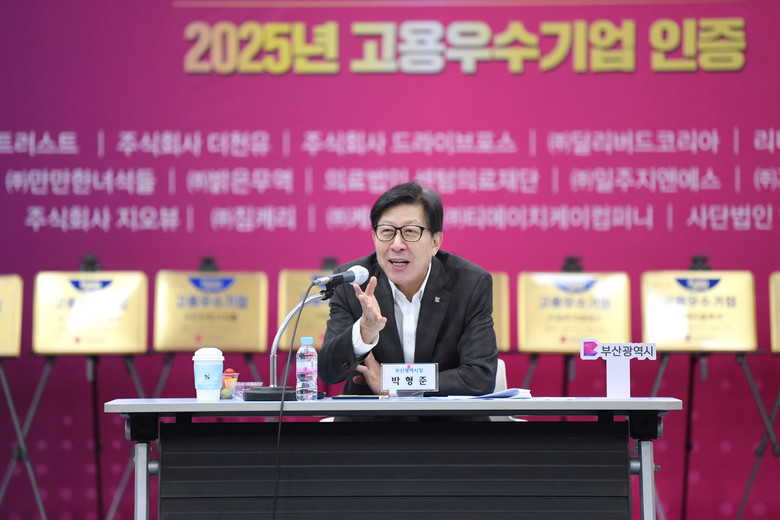 ◈ 6.27. 11:00 시청 대회의실에서 올해 고용우수기업에 대한 인증서 수여식 개최… 박형준 시장, 선정 기업 대표 등 40여 명 참석 [세계타임즈=부산 이용우 기자] 부산시(시장 박형준)와 (재)부산경제진흥원은 고금리, 고물가 등 어려운 경제 상황에서도 일자리 창출을 위해 노력한 15개 사를 '2025년도 고용우수기업'으로 선정했다고 밝혔다.