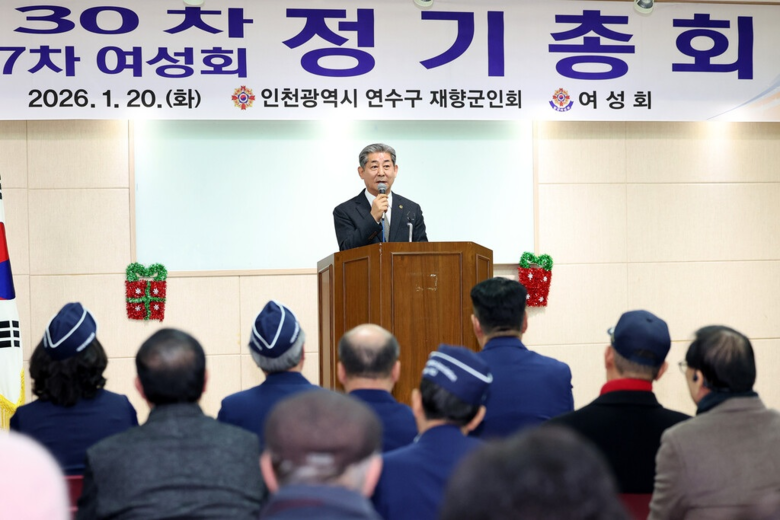 [인천 세계타임즈=심하린 기자] 인천광역시의회 정해권 의장(국·연수구1)은 20일 인천시 연수구 보훈회관에서 열린 ‘2026년 제30차 연수구 재향군인회 및 제27차 연수구 재향군인회 여성회 정기총회’에 참석해 회원들을 격려했다.