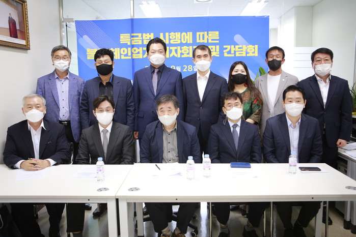 한국블록체인협·단체연합회는 28일 오전 서울 금천구 협회 사무실에서 '특금법 시행에 따른 블록체인업계 기자회견 및 간담회'를 개최하고 있다