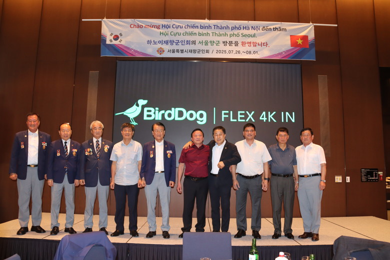 | ▲ 지난 7월 28일 서울 마곡 머큐어 호텔에서 마련된 베트남 하노이 재향군인회 환영 만찬에 참석한 김용호 시의원(오른쪽 네 번째)이 한-베 재향군인회 임원들과 기념촬영을 하고 있다. |