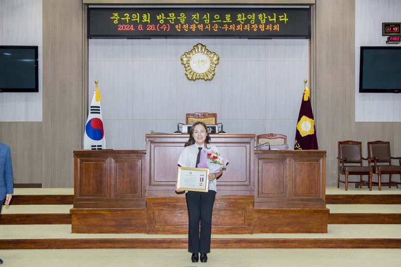 [남동구 세계타임즈=심하린 기자] 인천 남동구의회 더불어민주당 박정하 의원이 26일 인천 중구의회에서 대한민국시군자치구의회의장협의회 주최로 수여하는 ‘제9대 전반기 지방의정봉사상’을 수상했다.