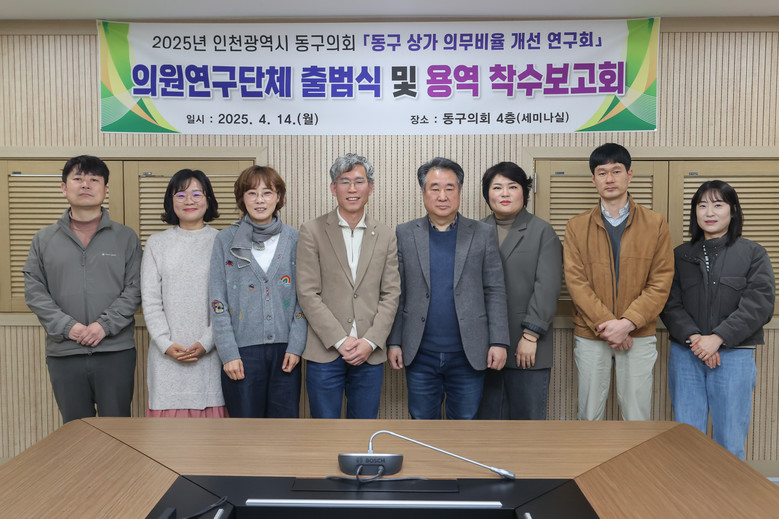[동구 세계타임즈=심하린 기자] 인천 동구의회(의장 유옥분) 의원연구단체 ‘동구 상가 의무비율 개선 연구회’는 지난 14일 동구의회 세미나실에서 출범식을 개최했다고 밝혔다.