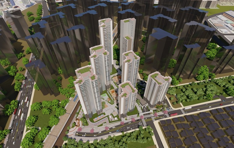 주요 내용으로 역세권 앞 경사지형 부지 여건과 주변 개발사업과의 조화로운 여건을 고려하여 단지 단차를 활용한 주동 배치 및 층수 다변화(17층~36층)를 통해 자연스러운 스카이라인을 계획하였다.