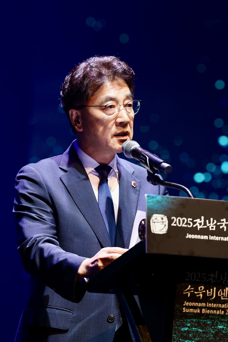 [전남 세계타임즈=우덕현 기자] 김태균 전라남도의회 의장은 8월 29일 목포문화예술회관에서 개최된 ‘2025 전남국제수묵비엔날레 개막식’에 참석하여 축하와 함께 “수묵 부흥을 위해 힘쓰겠다”고 밝혔다