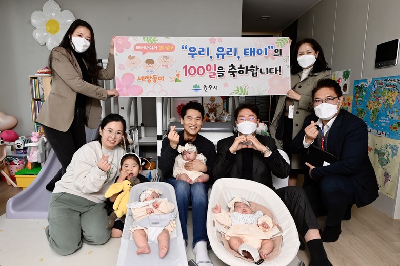 [원주시 세계타임즈=김민석 기자] 원강수 원주시장은 14일 지정면에 거주하는 세쌍둥이 출산 가정을 방문해 세쌍둥이의 백일을 축하하고, 아이 키우기 좋은 도시 조성을 위한 노력을 약속했다.