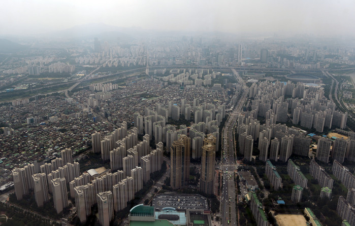 정부가 서울 전역과 과천시를 투기과열지구로 지정하고 강남 4구를 포함한 서울 11구, 세종시를 투기지역으로 지정하는 고강도 대책을 내놓았다. 사진은 2일 서울 송파구 서울스카이타워에서 바라본 서울 주택가 모습. 2017.08.02.