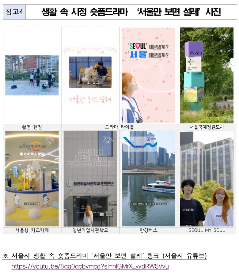 영상은 총 22편으로 구성되며, 21편의 본편과 1편의 티저영상 제작했다. 모바일 시청 형태의 세로형 2분 내외 영상으로 생활 속 정책을 드라마화한 몰입형 시리즈로 서울시 명소와 정책을 잘 담아냈다는 평가다.