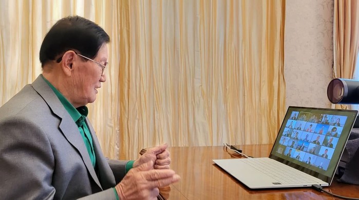 | ▲ 25일 열린 신천지 온라인 세미나 간담회에 참여한 이만희 총회장 |