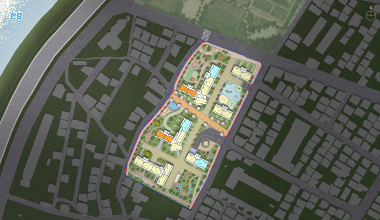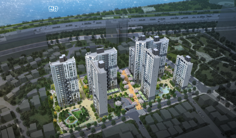 단지 중앙에는 공공보행통로를 조성해 한강공원 나들목과 효율적으로 연계해 주민들의 접근성을 높이고, 한강과 주요 생활 가로를 연결하는 핵심 보행축을 형성할 계획이다. 특히 이 보행통로를 중심으로 외부 개방시설인 어린이집과 어린이놀이터를 배치된다.