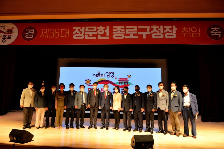 정 구청장은 지지와 성원해주신 모든 구민들께 감사의 인사를 전하며 “ 종로 구민을 섬기는 구정을 펼치겠다” 며 ‘미래문화의 산실이자 세계의 본이 되는 종로’를 제시하겠다고 취임사를 밝혔다.